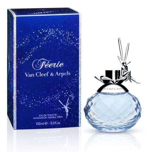 Lahvička parfému Féerie připomíná drahokam odrážející světlo nekonečna v mystické tmavě modré barvě. Nezbedná víla sedí na větvi. Kouzelná krabička jako z pohádky se třpytí milionem světýlek a na ní víla kolem sebe sype hvězdičky zářivé jako diamanty.